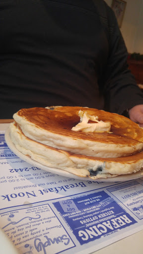I have driven by the Breakfast Nook countless times so decided to go in. It was a Sunday morning so rather busy. After a bit of a wait, the hostess pointed towards a table and told us, You can sit over there. The Nook is aptly named as it is rather small but that just lends to the coziness of a spot. The server brought us over coffees and hands down, the worse coffee Ive ever had. It tasted like 95% water and 5% actual coffee. I ordered scrambled eggs, which came with toast and home fries as well as a waffle. The eggs were cooked fine and the home fries werent overly greasy. A positive note was that the amount of home fries was just right. The waffle was disappointing--it tasted like a frozen store bought waffle. My friends meals were fine. Surprisingly enough, the bathroom is through the kitchen. Im reducing the review points because the coffee was so bad. I dont think this it was a one off, I think their coffee must always be bad.