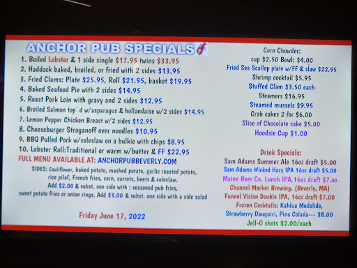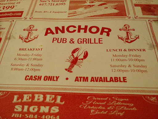 If you love char-broiled sirloin steaks, lobster or scallops? You cant go wrong at the Anchor Pub & Grille, Great food, a very pleasant staff, and great prices. Anchor Pub & Grille gets exactly the rating that a friendly pub style restaurant with great food and prices deserves. 5++ Stars All The Way!!!