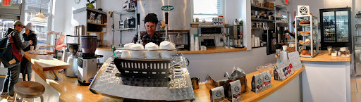 Best cup of coffee in JP, hands down, perhaps in all of Boston. Tiny and borderline pretentious austere interior, constant stream of instrumental bebop on the speakers. Espresso is "triple ristretto" which (because I asked last time I was there) essentially means more grounds per shot. Their version of an Americano is unrecognizable if youre used to the weak and watery excuses that get passed off anywhere else (even the new Caffe Nero down the street). Bottom line: simply perfect coffee and nothing more.