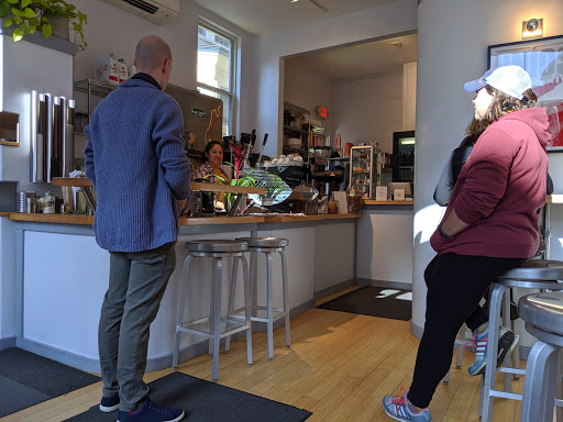 Great little coffee shop with a tasty selection of coffees, tea and baked goods. They have a few bar seats right in front of the large storefront windows where you can relax and watch the world go by. Fun place to hang out and warm-up in JP.