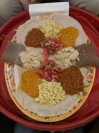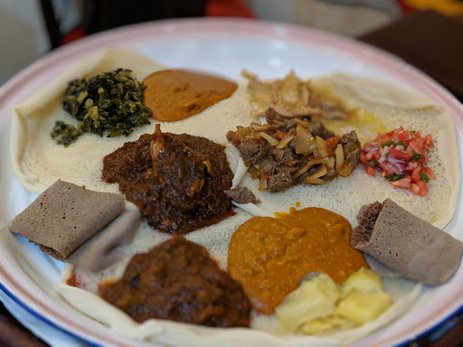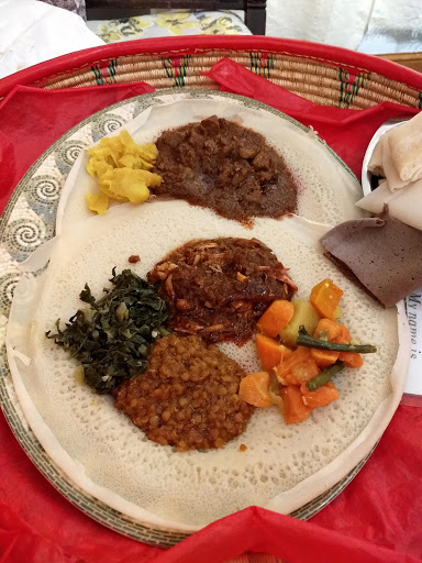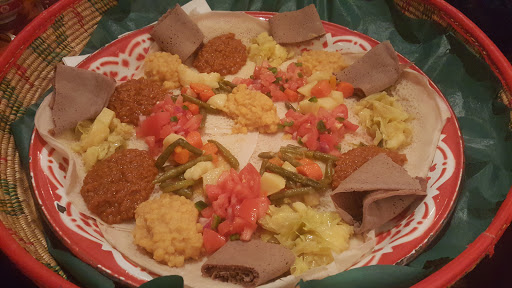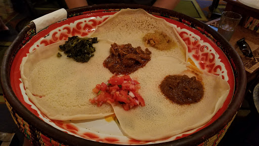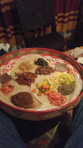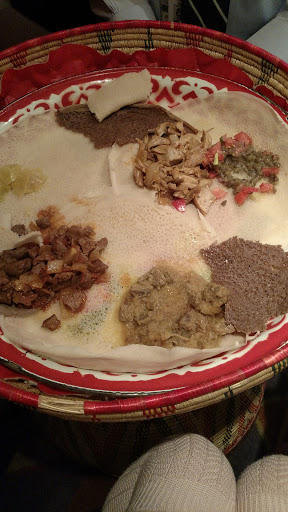 Very disappointed. Ive been to one of the best Ethiopian restaurants: The Blue Nile in Berkeley, CA. Ive also been to many in the Fairfax district in Los Angeles. I live in Boston now, and wanted some great Ethiopian food so I gave this a try. Dont waste your time. This is some of the most bland food Ive ever tasted from ANY restaurant. Its almost like they are not adding spices anymore in the bad economy, to save expenses. My grandmothers dish was served cold, literally cold. I know it wasnt supposed to BE cold because I got the same thing in the vegetarian sampler and mine was warm. The chicken dishes are so bland and thoroughly unappetizing I felt sorry for the place. There was ZERO seasoning of any kind. Just torn up pieces of dark meat and gristle with some wet looking tasteless "sauce". I could have made something tastier at home. The vegetarian dishes were boring, collard greens needed some extra umph, lentils barely had any flavor and no sauce to them at all, just a pile of lentils. The cracked wheat was just okay. The "chickpeas" were a cold crumbly mess of what looked like hardened cottage cheese. I thought I was getting chickpeas? The chairs were way too hard, and the food took too long to get to us. The only good thing was that we found a parking space right outside the front door (parking on the side streets is allowed only by permit). Anyway, I will not be returning to this restaurant. THOROUGHLY disappointed. And to think we drove into the city for this!