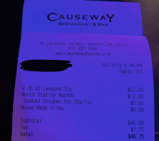 Perfect spot! We came upon the Causeway while searching for "facilities" after sitting in traffic. Classic look, which is a norm in Boston, with sports on every screen - okay, okay we were in town for the Celtics vs Bulls Game 5! :-) Superb food and menu selections! Just outstanding food!! The staff was glad we were there and thankful for our business...very nice and welcoming feel!