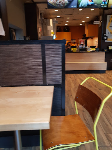Great lunch place or to pick up food for a quick dinner. There is often a long line at the lunch hour rush time but they move through it quickly. They do take credit cards here. There is one small table that I wouldnt plan on sitting at unless you come at an off time. The best part is putting all the sauces you want in your container before you go!