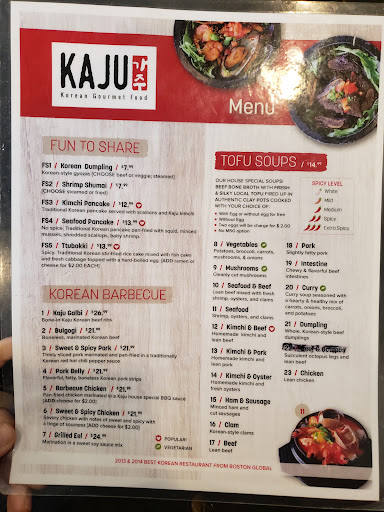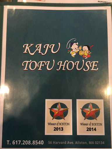 I just left the place upset. Aluminum foil in our kalbi. They didnt replace the dish. Horrible service and didnt care because they "auto tip" 18% on us. It was just my family (x5). We have three little kids. Too crowded. Waitress even asked table next to us to move another smaller table because larger party came into the door. The customer had to carry his own drink to another table. Poor ventilation inside this tight space. Your clothes will stink up, when you leave. Never going there again. Kaju tofu isnt even popular place. Someone should open another tofu chain in Boston. Cant be worse than this place.