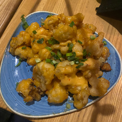 Oh a whim, I changed our plans and headed to Koy for the first time. We went for lunch on a Saturday. It wasnt busy and the service was friendly and attentive. We started with the cheese steak dumplings (hot and crunchy) and the cauliflower steaks (surprisingly flavorful). My party of 3 shared the Angry Chicken and the Japchae. Both were good though I liked the Angry Chicken more for the crunchiness. It was definitely not too hot. The Japchae was tasty with lots of sesame oil. Next time, well probably get one more appetizer or plate to feed our crew.