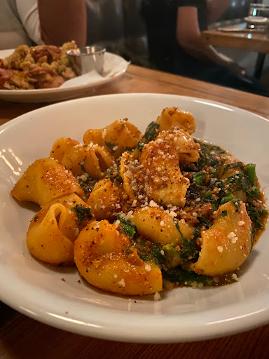 Food, atmosphere and drinks are all amazing. Ive been several times since the opening and had great experiences. The food is fresh and flavorful, perfect portion sizes as well. Both times we got several apps to share with the table, and then our own meals - which are enough to feel full, but not over-stuffed. Some menu favorites are the Arancini, Mida Pickles, Caponata Toast, Gnocchi, Duck Confit Orecchiette (FAV!). Definitely will be back for more, great place to go with friends, drinks after work, date night, etc.!