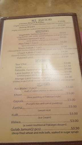 The restaurant is very clean, service is polite, food is reasonably priced, and location is very convenient. I thought the chapli kebab was a little small for the price they charged for it, although the flavor and texture were good. Nehari was a big disappointment. The portion was small and it seemed to be made with cubed beef instead of the traditional shanks. The gravy tasted off...not bad...but not the way it was supposed to. It was almost like a kadhai gravy with a tomato flavor and red color instead of the silky brown nehari gravy. The worst part was that it didnt come with the garnishes that come with every nehari everywhere: chiles, lime, cilantro, and ginger. When I asked for it, thinking that they didnt bring it because Im a gaura, they brought me a small container of Real Lime Juice and some cubes of ginger. The dish came out with basmati rice, which is kind of weird as youre supposed to eat nehari with naan. I ordered a piece of naan, and it was more like a papad. The entire middle of it was wafer thin and crispy, which isnt good when youre trying to scoop up gravy. The food isnt bad quality, its just not the way its supposed to be.