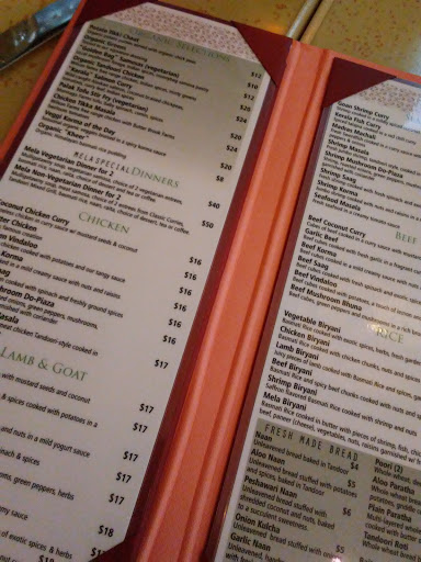 We had dined-in a few times at the restaurant and were reasonably satisfied with quality. So when a major event came up and we needed catered Indian food, we called Mela. When the food showed up and we took off the lids we were in shock (and embarrassment in front of our guests) -- there was an inch-thick layer of OIL floating on top of each entree! Absolutely gross! We ended up scooping out the oil and collected one 16 oz cup from each entree -- no exaggeration here!! As an Indian I know very well how greasy our grub can be, but I have honestly not seen anything like this! Also, the chicken and paneer entrees we got turned out to be practically identical!! You do expect the restaurant to tell you that the entrees you have selected have the same base and you should select something else. All in all a horrible experience. I would never cater from this place again, and am not planning on dining-in either.