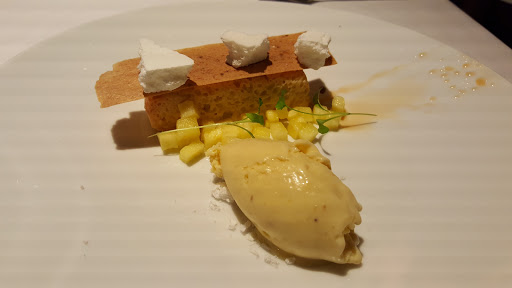 Great food ... Great presentation! The delivery was perfectly timed, you werent rushed nor did you have to wait ... Although I was tempted to order everything on the menu, I settled for the scallops which were cooked to perfection and paired beautifully with the wine, I then had the venison wrapped in prosciutto which was perfect in color and temperature. If you plan on dining at Meritage, be prepared to have to pallet go on a wonderful ride of flavors and compliments. I suggest you know or have some experience in fine dining to appreciate this journey, as I sure did.