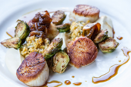 Great Sauces, we shared the brussel sprouts as an appetizer, Sharon had grilled eggplant steak, I had black pearl salmon. The sauces on the dishes were outstanding.