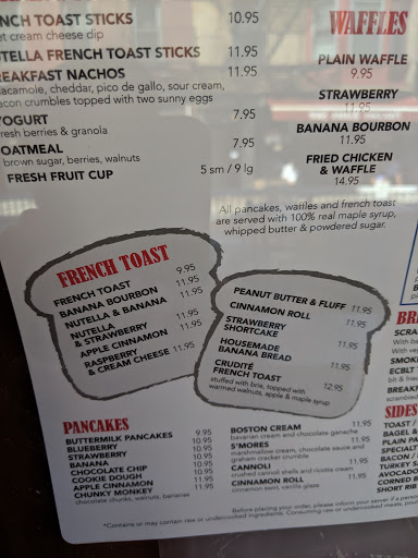 I go as often as I can. Limited menu but everything Ive had there is great. Burgers are awesome, but the place definitely shines and a brunch spot. Cinnamon roll french toast, tiramisu pancakes, sausage and peppers omelette to name a few favorites. There are some complaints here about service but look at where youre going. This is not a five star fancy restaurant, its not trying to be, dont expect that kind of service. The staff is great. Be polite and theyll treat you well. Think of it more like a mini diner that you go to after a late night out, but the food is amazing. Also suggest the bloody Marys and iced cafe drinks in the morning. Edit : wanted to add that recently theyve hired some new staff and they have been offering to call or text you when your table is ready so you can go for a walk and not worry about losing your spot.