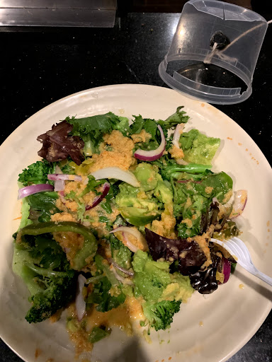 We came in for a dinner before theatre show. Location is really convenient being close to parking and to the performance. However, the waitress was arguing with us that that the tea is hot enough, when it was not, from the customers perspective, and they do not even steep green tea, which would be expected from an Asian restaurant. The food was not great (except KALBI BEEF SKEWERS). We had AVOCADO SALAD, and WHITE MISO SOUP. The scallion pancakes were crispy, which means too dry, for our taste.