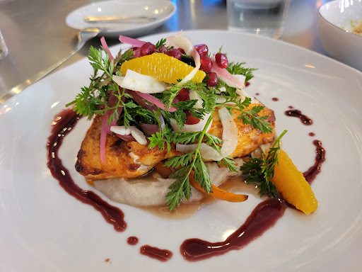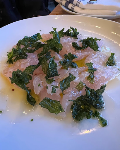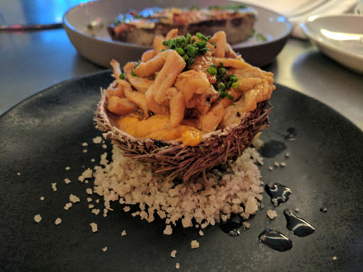 Very enjoyable, very fresh raw bar with inventive cooked seafood dishes. Enjoyed the ceviche, cold crab cake, white anchovies on toast and very good oysters. Halibut was on the edge of overcooked and not crisp enough but still enjoyable. Service was acceptable but not overly attentive, especially when we first sat down. What hurt our evening was our choice of the anjou cocktail - overpowering to say the least - sweet and sour and does not go with raw fish as my friend discovered to her downfall later. Should come with a warning - do not pair with delicate seafood flavors. Overall the seafood is worth it - but very pricey. 3.5 would be a fairer score.