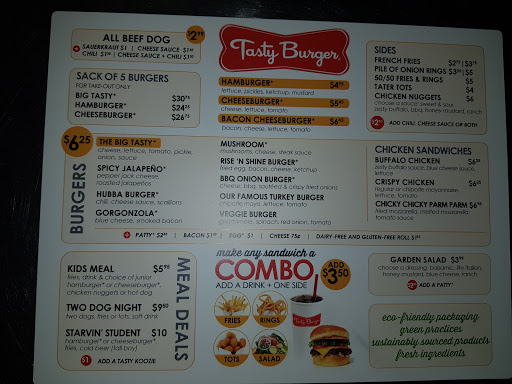 I ordered the original tasty burger, a vanilla milkshake, and a basket of fries. First of all, the food came out very quickly which was a plus. The fries were not as good as I was expecting but were still very satisfying. The milk shake was on point as well. It was the perfect size and a good ratio of ice cream and milk. Finally, the burger. Not only was it the perfect size, the bread was soft, the patty was well seasoned, and the mayo/ketchup/ tasty burger sauce wasnt overpowering. The prices are amazing. For everything I ordered my bill was less than $10.