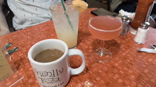 This place gets five stars for being delicious and food-allergy-conscious. My friend has celiac disease so she cant have food that has even come into contact with wheat/gluten. After we told this to our waiter and ordered, the manager came over to discuss the food and let us know one of the dishes we ordered (the nachos) wasnt gluten-free. We were told that they have a separate grill to handle food allergies (but not a separate fryer, where the nachos would end up briefly). Instead, we shared provolone homefries and my friend ordered a gluten-free burger, and she had no reaction to the delicious food from Friendly Toast. Thanks for that! Besides that, the food is always great in general and they have some pretty creative dishes. They also have a pretty nice tea selection. Fantastic place for brunch, just make sure to put your name down early via an app like NoWait because the wait can be 2+ hours on a weekend during brunch hours.