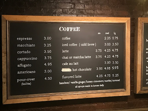 This is one of my favorite coffee shops around Boston. Its especially nice after a long day. The lighting is warm and relaxing. The decorations are very interesting, love the musical instruments! They have a wide array of yummy treats. A tried and true favorite has to be the salted chocolate chip cookie. Its the perfect balance of salty and sweet! I love their mochas. They create each drink with care, and always do latte art! My husband tried the bourbon latte (which was a special and had to be consumed in store) and he said it was delicious! This is a consistent coffee shop, that delivers quality and tasty products. Worth a stop!