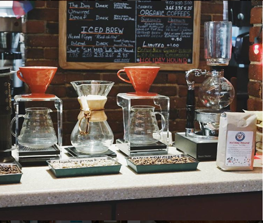 My favorite coffee place! Theyre very dog friendly and have tables to sit outside (as well as seats in the back room), shaded in the morning and quite sunny in the afternoon. I always get a wolfhound iced coffee but their lattes have been delicious too. They offer soy and almond milk on the bar in addition to the usual dairy options. Im a fan of their loyalty card too. Feels much smaller than the Ptown location but definitely well frequented.