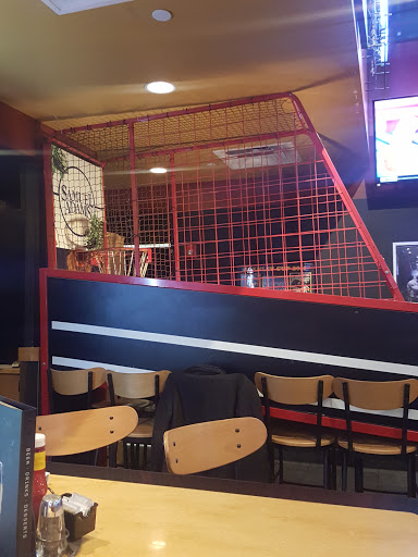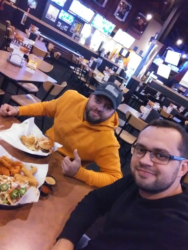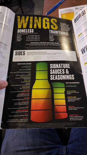 The food and service is great! Great place for people that like to watch sports since there is approximately 50-TVs. There is a contest that consists of consuming 12-blazing wings within 6-minutes for a free T-Shirt.