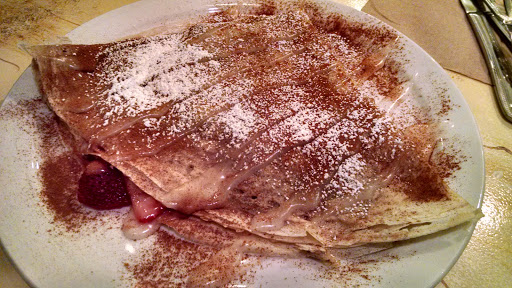I had just finished a tech conference, and was staying the weekend with my sister in Brookline. The day before I flew home, she suggested we get some crepes before our jaunt to Fenway. I have never been to a crepe place before. Not sure what to expect. We found the establishment pretty crowded, with all tables occupied. After ordering, I triaged the patrons who I thought might leave soon. After picking my target table, I commenced on overtly staring at the girl who was sitting in the chair facing me. I fixed a penetrating stare on her for about three minutes, her eyes darting back and forth between me and the others in her party. Finally, she could take no more and the table was relinquished. I moved in quickly to lay my rightful claim. Mind you, we were there Saturday morning, and there was no shortage of customers. We waited about 15 minutes for our order, but passed the time people watching out the big picture window. The crepes were good enough. I really dont have a baseline with which to compare above average to substandard. In my opinion, the best part was just being there, and commenting on the general public who happened to serve as our morning entertainment.