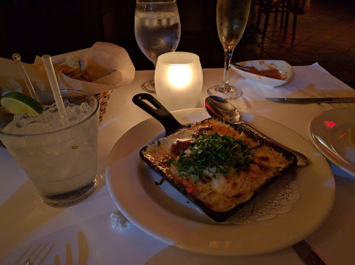 We visited at approximately 6:30pm on a Sunday... tl;dr: Clean, modern mexican restaurant with a "candle"-lit wall worth seeing. Food is well prepared, but a bit pricey for what youre getting. When we entered the restaurant we were surprised by two things: 1) The look of the place is great! Dim (not too dim), warm lighting, darker wood, etc. 2) It was nearly empty! We were surprised as we first stopped by Border Cafe and that place had an almost 2 hour wait. We were seated immediately, near the door and across from the bar; satisfactory in every sense. The initial wait time to get drinks ordered was a bit long considering how dead it was but nothing too serious. The waitress did a fantastic job upselling and really making us want to get the guacamole, which was delicious; unfortunately one of the avocados was just on the edge of being ripe so it was a bit chunky but we really enjoyed it. For the main meal I had ordered the Enchiladas Suizas and she had ordered the Mixtos. Both were good, but could use tweaks; for example, the Enchiladas had an AMAZING sauce but the meat was a bit dry and mostly meh. The Mixtos had delicious fixings but the cheese was a bit pointless (congealed after 5 minutes) and the tortillas are only as big as your fist. The oddest part of the meal was dessert, honestly. I only say that because they offer no written dessert menu; the waitress will tell you 4-5 different desserts all back-to-back and then expects you to be able to answer which youd prefer then and there. In any case, we chose a tres leches dessert that was excellent! Cake was perfectly done, nothing was too sweet or too dull. Just right. The bill didnt make me regret the meal but I wouldnt go there again unless there was an occasion. With 2 waters and the plates I listed it came to just about $70 (then tip on top of that).
