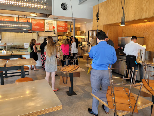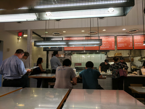The food was very good & the employees are polite. I have no big complaints abut either of those really, & will continue to eat there. BUT the presentation of the food is CRAP in my opinion. Its quite literally an assembly line of people getting their food "slopped" on top in layers with a big spoon, like something youd see in an army cafeteria. It looks offensive the way its done and almost makes you want to go elsewhere. BUT the food is definitely tasty and servings are large. The atmosphere is clean & contemporary but a bit small. The prices are average for Mexican- I spent $12 on a drink and burrito w/guac. The line to get in is honestly out the door every day, which tells you something about the food. The employees, although very polite, make you feel rushed to get past them so they can serve the next person, and therefore you feel awkward, as if youre competing for the slop of food on your burrito. I will continue to eat here on occasion, as the food is good, but otherwise I feel going to a restaurant is a better choice for the money.