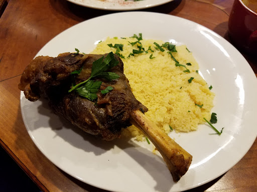 Algiers Coffee House is a strange, but somewhat pleasant place. Is it a cafe? An Algerian restaurant? Im not really sure. The decor is unique and somewhat Arabic, yet also has the vibe of a student hangout. I had the Algerian mint tea and a spinach pie with yogurt for a snack. The tea was fine, as was the spinach pie. I also tried their hummus and it was bland, watery, and pretty poor. I sat outside on the rooftop patio, which was by far the best part about this place. Its small, but nice to get fresh air and eat outside. Service was slow and the waitress never ended up bringing the check, so my party and I had to go downstairs to pay. Overall, its a decent place and I would come back for a tea and maybe a snack.