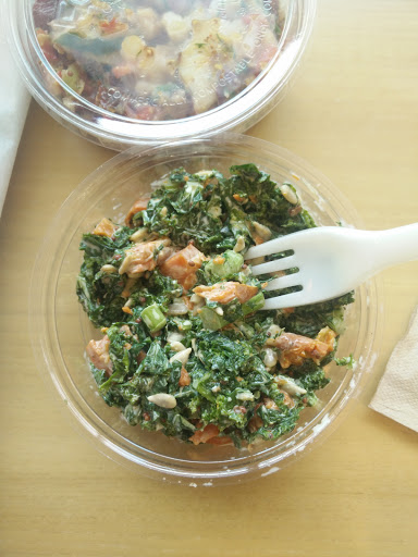 Im not even remotely vegan but I love this place. Every time I go theyre serving a completely different selection of salads so its always new and interesting. Practically everything they make is a new and usually delicious experience for me. They frequently show me that some things Ive always hated actually can be prepared deliciously. I always get the mezze platter which is a selection of 4 salads and a side of surprisingly tasty humas.