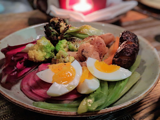 The care taken in the preparation of our dinner was quite evident: ethereal, rich, sensory, deceptively compact semolina cakes (warm, w/parsnip crema, hazelnuts, apple, nutmeg and parmigiano)--breakfast and dessert together; a virtually incomparable antipasto of burrata (w/berkshire ham, crisp and charred and oil-laden sourdough bread, perfectly marinated artichokes); an excellent bucatini allamatriciana (w/house-cured, chunky pancetta, tomato, onion, pecorino); an addictive pappardelle with wild boar (plus black trumpet mushrooms, juniper and parmigiana); a warm, buttery ground almond torta (w/vanilla gelato, almond praline---some pieces dentally challenging--- and wine-macerated fruit salad); an espresso-topped affogato ( with chocolate and vanilla gelati and authentic Italian cookies); a very nice Verona Soave from Giannoni Selections; and excellent coffee. Great house-made pasta. Difficult to reserve less than a month ahead, yet has neighborhood vibe, possibly including walk-ins.