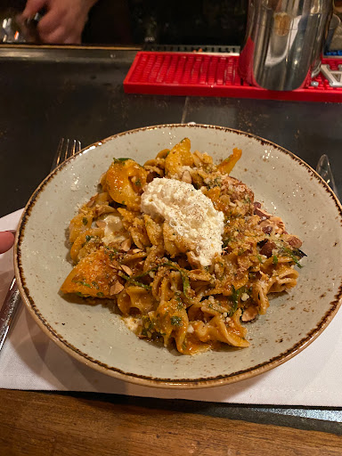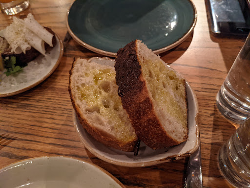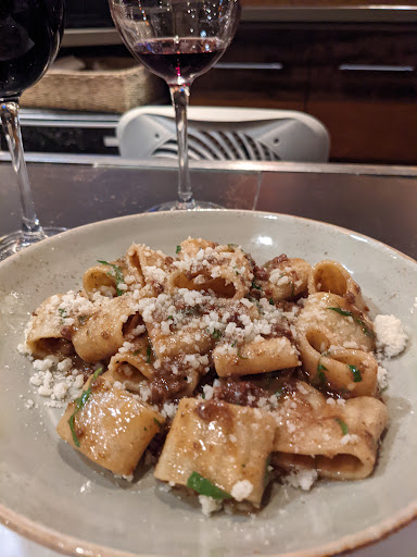 We stopped in on a Saturday night and we were able to sit at the bar. They do a wait list, in person, for the bar but no reservations. First off, the food here is excellent and we will definitely be back. This place embodies everything I love about modern Italian food. Smaller portions, big flavors, and slightly adventurous. We were told that all the pasta being served is made within the last 24 hours. If you have been to the famous Flour + Water in San Francisco, this place is pretty damn similar. Why the 4 stars? First the wait between appetizer and entree was almost 40 minutes, which is a little unreasonable especially for fresh pasta. When I asked our bartender about our meal and if she thought the wait between entree and dessert would be as long, she gave a response that was borderline unfriendly instead of sympathizing with the long wait. This was one of those waits where you find yourself staring at the open kitchen saying to yourself "Oh this must be my plate coming out" Then it isnt... On to the food: Sexy Americano (cocktail) - A mixture of rose champagne and St. Germaine, I expected it to be a little sweeter but found it dry. Not my style. Fresh Bread & Olive Oil - Great room temperature bread served with some of the best tasting olive oil I have had in memory Burrata - The highlight of this dish was not the burrata itself, it was the complex and outstanding mix of flavors the veggies and spices added around it. Small plate, only enough for 2 people at most. Bucatini - Imagine if you put angel hair pasta on steroids for a few months, that is what bucatini is and it was excellent. The chucks of pancetta and and red sauce were simple yet extremely flavorful. I cannot emphasize enough the quality of pasta here. Pappardelle with Wild Boar - Wide long noodles (imagine lasagna noodles) accompanied with some slow cooked wild boar. For those not into exotic meats, this tasted no different than a beef brisket in terms of texture and flavor profile. The black trumpet mushrooms added a nice flavor. I thought this was the best dish of the meal Almond Torta Dolce - My favorite of the desserts I tried. Almond bread with some peach jam and whipped cream. The flavors were simple while going together perfectly all at once. This seems to be a theme of this restaurant. Affogato - This dish is essentially a gelato/ice cream smothered in a shot of espresso. They use a hazlenut gelato and mix in some shortbread and real hazlenuts. Due to the shot of espresso the dish is slightly bitter. Great if you want coffee and dessert in one dish