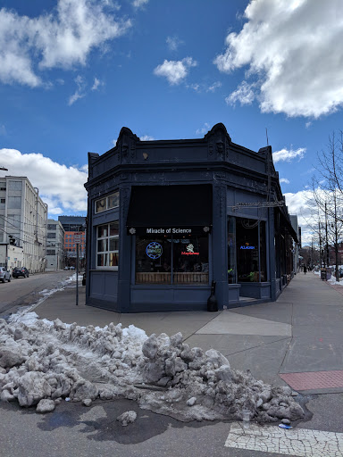 This place should have a nice shtick. It has the name, the Cambridge location, the "periodic table" menu... but beyond that its just an overpriced dive bar. A server griped at my friend for sitting too far down the bar (dont put a stool there then, eh?), my (veggie) burger was overpriced and mediocre and my friends non-veggie was also overpriced and mediocre, and the beer selection was just enough to get by on. A full bar could have some nice signature cocktails (to, you know, go with the name) or some specialty hard A, but no. There are plenty of dive bars in Cambridge and next time Ill go somewhere with cheaper food and better service.