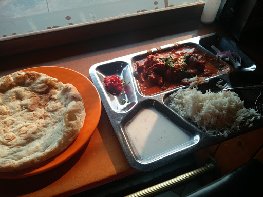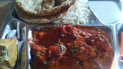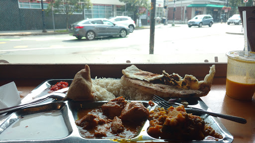 This is a good, busy, neighborhoody place thats open late. Seemed like they must do more takeout business because the seating area is tiny, but people were waiting and ordering and generally in and out, and we had a 40-minute wait for a fairly small, uncomplicated meal. Its nice that they have a few South Indian dishes, since I dont see that so often on the East Coast. Masala dosa was good (probably better eaten in, since it doesnt pack, travel, or cool very well), as was the chicken tikka masala, and the chaat. The chicken wasnt white meat, which I would have preferred, but it was good and covered in sauce, so I didnt care much. The chicken dish didnt come with rice, which the menu doesnt say explicitly. Overall a very good meal easily for less than $10 per person. Do call ahead if youre picking up.