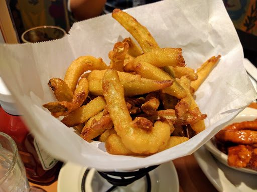 This place is really the epitome of just "okay". We ordered fried pickles, their "award winning" wings, and a rack of the S&S ribs. The fried pickles were as expected, very standard. It was my first time trying fried pickles so I dont have much to compare with. Theyre just pickles fried in dough, almost like onion rings. The sauce on the wings was pretty strong, but again nothing really stood out and Im not sure Id recommend unless you love wings that much. The ribs were also just all right. The meat wasnt that tender and the sauce wasnt too special. In a word, forgettable. We also got a few beers and they were fairly bland. Overall a nice diner with acceptable food, but dont have your expectations set too high.