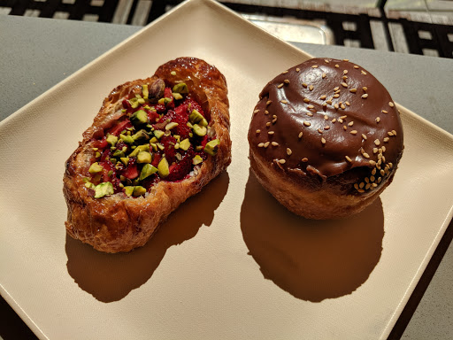 One of my favorite food places, everything in here is absolutely delectable. Bright Mediterranean bakery with sweet and savory options. Definitely get the shakshuka if you make it there for breakfast: perfectly poached egg in a dreamy tomato base served with puffed up pita bread to sop up all the flavors. Also great: the mezes (my favorite is the muhammara, perfect with crick-cracks) zucchini fritters, moussaka, pretty much everything on the menu. Their sweets are to die for: chocolate earthquake cookies are chewy inside with a crispy outer shell, the almond-rose cake and kunefe are light yet decadent. The only downsides are theres not much seating and expect a wait during lunchtime, especially on the weekends. But worth it, every time!