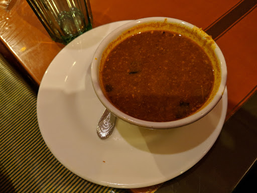We stopped here for dinner on a hungry whim. It was a good move. The server let us know that our initial order of american indian staples like saag paneer and tikka masala was too boring and suggested we try other more authentic south indian options on the menu. We ended up with a mix of new things I had never had before as well as an order of saag paneer. The new dishes were excellent. I particularly like the coconut roti which was served with a variety of brightly colored curries. They were very accommodating of our groups dislike of cilantro and nut allergy making substitutions in dishes when needed. I really liked it and plan to return.