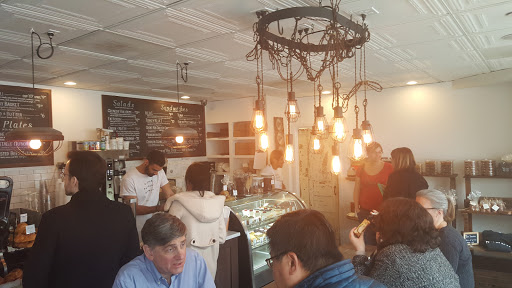 Small but modern and cozy. Not an ideal place to hunker down for working on a laptop, but great for a small group or to-go. Very solid espresso and coffee, significantly better than larger chains. Cinnamon-Pecan Rose is my personal favorite pastry.