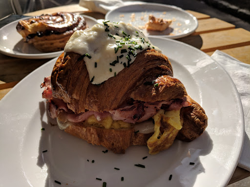 This cafe gets pretty busy, but the baked goods are nothing special. The service was a bit slow and there was too much crust on the quiche. I also had the "croque monsieur" made with a croissant, which was pretty good. The pear and berry tart was also nice, but the sandwiches are too dry. The bread used on the sandwich itself was a little dry and none of the filling helped with this.
