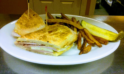 Delicious Cubano sandwich! Great iced coffee and crispy fries great stop by bunker hill
