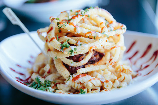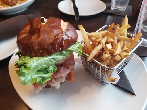 Attractive, contemporary, and comfortable atmosphere with attentive and accommodating service. When sharing their generous portions the kitchen will do the splitting and offers a beautiful, half-serving to each. Great salads, which they also split into two attractive servings. Cheeseburger tasted perfectly grilled with a fine, sharp cheddar garnish. Onion strings are hot crunchy. A very fun spot to visit and enjoy a tasty, inexpensive meal. The cocktails are also well made and fill strength.
