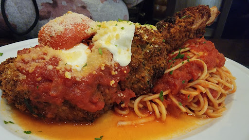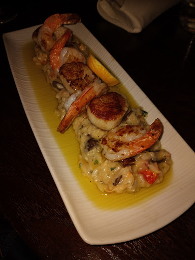 well another rainy day so we decided lunch out would be nice and wound up here.....we were glad we did......very pretty place, not very busy on this rainy day and a bit understaffed and the bartender/server seemed to be doing everything....but did a very nice and friendly job of it all...open kitchen which is nice and both a lunch and normal menu offered, wife had the daily fish which was a swordfish dish which she thought was wonderful, i had the chicken parm, which was excellent.....whats not to like, drinks were good and as ordered, nice bar area with 7 tvs over the bar and some other nice areas also.............glad we chose this on the cold rainy day!!!!!!