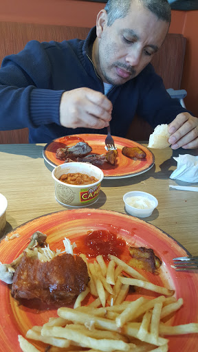 The Chicken amazing...the sides like beans n yuca are horrible.The East Boston one is Awesome ...and in the one in CHELSEA i always have to order food for my Girlfriend who doesnt speak Spanish...your a Major Food Chain..No english!!?Not even on drive thru!!? FOR that ill go to la Hacienda in east boston...O las Pupusas del Chino in Chelsea atleast there if i Have to Order for me n my girl in spanish Only ill get Authentic Spanish Food!!