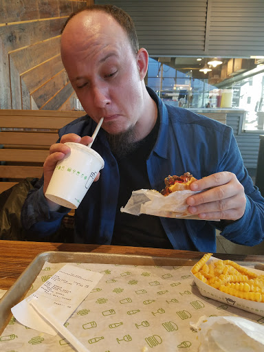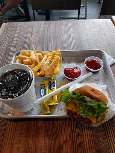 Ive said it before (at another shake shack) and Ill say it again: the veggie burger is a mushroom filled with cheese and deep fried. Mushroom=great; anything filled with cheese=great; deep fried=great. I really should invest in a fryer so I can make these at home. But that will be no good for my waste-line.... The cheese fries are also really good. Good ratio, good cheese. We split a chocolate shake and it was almost like dark chocolate and very thick which we both loved. He got a double smokehouse and said it almost reminded him of what he gets at in-and-out burger. Almost. Staff were quick and the place was clean.