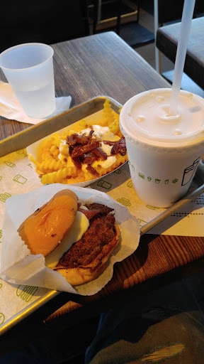 We have been wanting to visit a Shake Shack for a long while, based on reviews, and just happened by this one on a Friday night. What a bungled mess of a restaurant. They were extremely busy, we waited over 30 minutes to order and receive our food for carry out. The kitchen messed up several orders ahead of us and ours included. We ordered the cheeseburger and the mushroom burger, fries, a chocolate and a vanilla milkshake. The burgers were a complete disappointment (the bun was the best thing about it), as were the fries, and the vanilla milkshake tasted like the artificial ice cream that has all the fillers- ick. There are several other burger chains that are MUCH better. Sadly, a big disappointment.