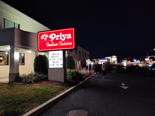 I have only been to the lunch buffet and got to-go once. The lunch buffet is always changing and the variety is awesome. The food is made in smaller batches so it doesnt sit in a chafing dish for hours. I used to go to an Indian restaurant in West Springfield quite a bit but the selections never changed, it always had the same 5 or 6 items. They always have a dessert with the buffet too. The value for money is unbeatable. Its a couple dollars more on the weekend but they add two more tables to the buffet with even greater choices. I am no expert on Indian food but I know what I like and I like Priyas food. I also notice that theres always a lot of Asian customers whenever I go there. If Im going to a Chinese restaurant I want to see Chinese people eating there, Greek restaurant, Greek patrons etc. If you like Indian food youve got to give the lunch buffet a try, worst case scenario, youre out $10.00 or so.