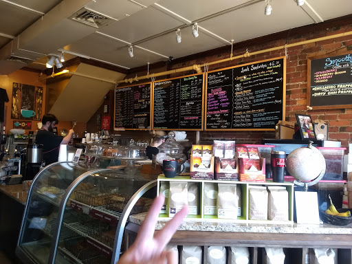 Mediocre. Run by a diabolical, hairy man. The location has so much potential- exposed brick, vaulted ceilings but it is overrun with poor taste. There are large menus covering the walls and it is impossible to order from the confusing text that overwhelms the senses. Never boarded the organic health food train and obviously is a great fan of BJs pastries. The staff is sweet- especially the woman who bakes the muffins and the coffee is yummy but overall Id avoid The Custom Cup.