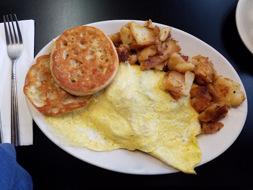 Good omelette, good service, comfortable atmosphere.... home fries were greasy and mushy.