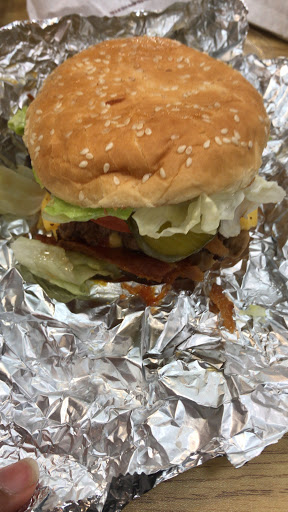 Five guys in general is one of top burger places - however, without the cheese the burgers can seem pretty dry. Cajun fries are a must-have, and the shakes are dangerously good. This place is pretty clean. Ive ordered some stuff online, but sometimes they dont work on the order until I have arrived.