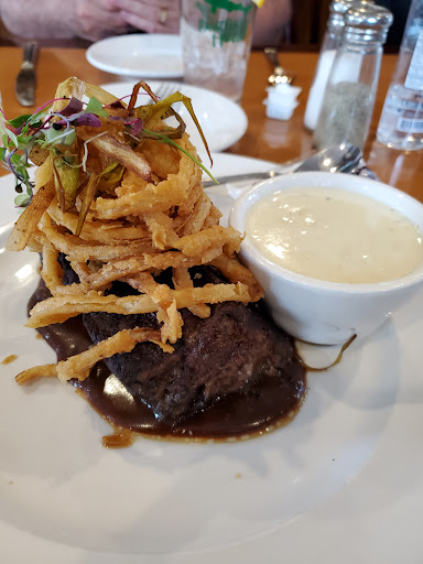 Food is excellent and consistent, service is friendly and efficient, menu is well rounded from burgers to Filet Mignon. My wife and I are regulars.