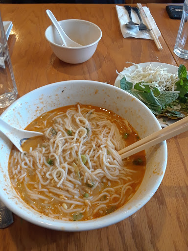 The location could have been better, but was a good experience for me. Really friendly service. The waiters were polite and smiling when they were taking orders and bringing the food out. As for the food, ordered the haddock, pineapple fried rice, satay chicken, tapioca balls, and Laotian chicken noodle soup. Will say that the noodle soup was my favorite as the chefs made the noodles themselves, broth to me was rich and flavorful. My least favorite, though still good was the haddock which came fried with a sweet sauce, though haddock could have been fried a little less, but was still good. Overall, I give this place 5 stars for their friendly service and great food. If your looking for a place with good Thai and Laotian food, I recommend this place. Definitely will come back to this place.