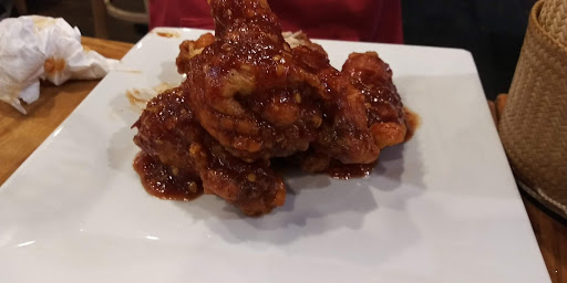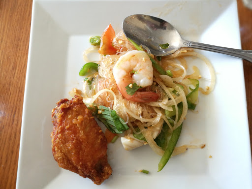 Brought family here for Sunday lunch. This small place with seat for about 45 is packed. We ordered the Lao style Yum Seafood salad, which tasted great. The shrimp and calamari mixed with bean noodles, onion, bell peppers, cilantro, basil, crushed peanut and lime juice created a harmony that will open up your appetite. We ordered the regular chicken wings because kids want to eat some. They are perfectly seasoned and fried. Would like to try the spicy one next time. We also ordered Drunken Noodles and Pad See Ew, these arent as good as I hoped. Flavors are there, but the chefs stir fry skill needs to improve, as the flat noodles are on the mush side. Services were good, one main waitress was able to handle all the orders with some help from other staff.