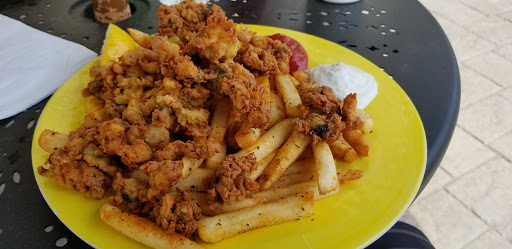 Plenty of Food in the Snug Harbor Platter, Good selection of Local Fresh Seafood, Row to go or Cooked to order. Seating is outside, just a brief table service, napkins, condiments, and get you started after you placed order inside. Simple service, good food, nice atmosphere.